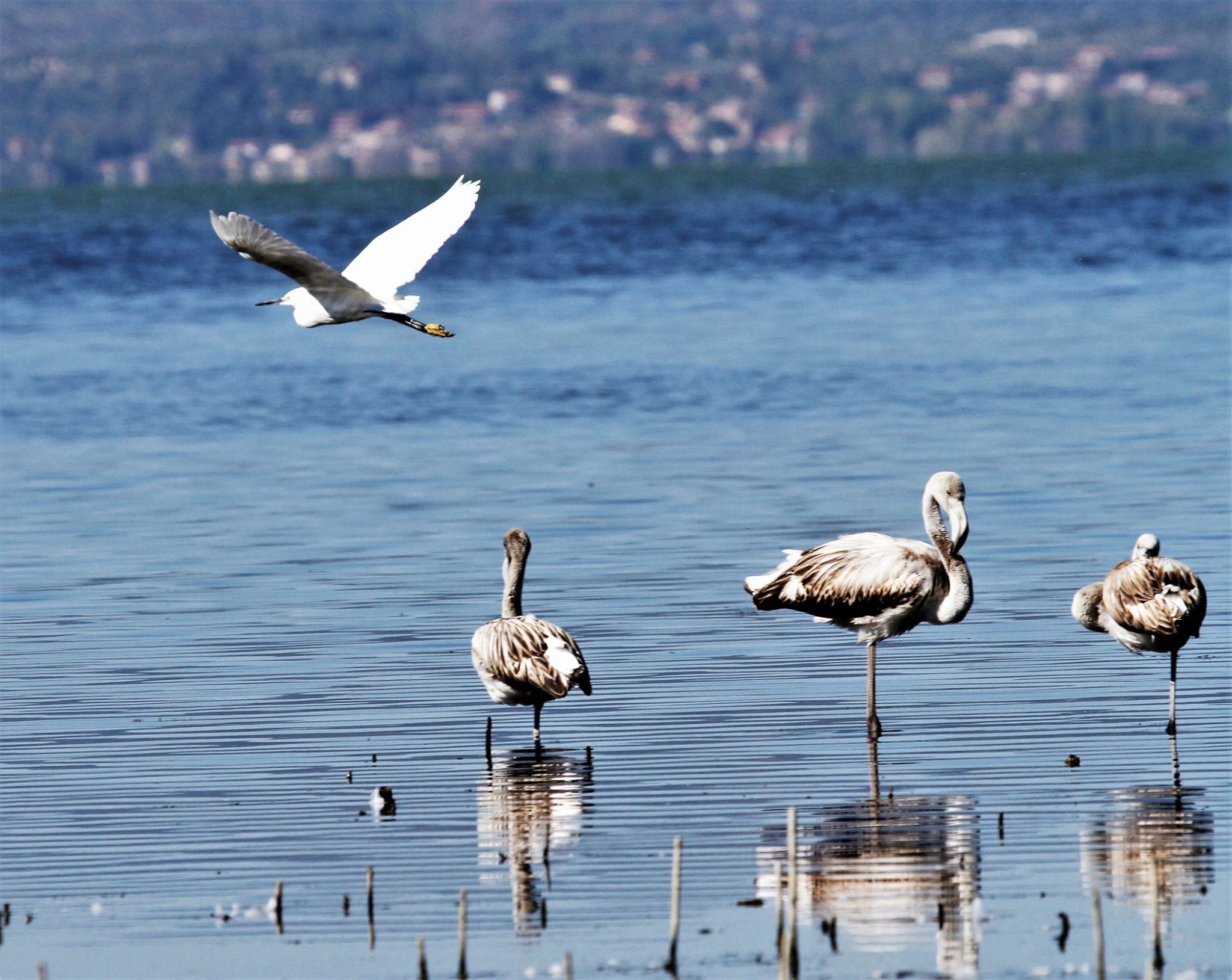 “È del tutto normale – spiega Maddalena Chiappini della cooperativa L’Alzavola – che nella loro migrazione tra le coste sarde e della Toscana dove svernano e il delta del Po e le saline di Cervia dove nidificano i fenicotteri si fermino al Trasimeno. E’ strano però che ci rimangano così a lungo, considerato che sul lago non è presente l’Artemisia Salina, il gamberetto di cui questa specie si nutre. Lo stesso crastaceo che gli conferisce il caratteristico colore rosa del piumaggio e che però vive solo in acque salate”.